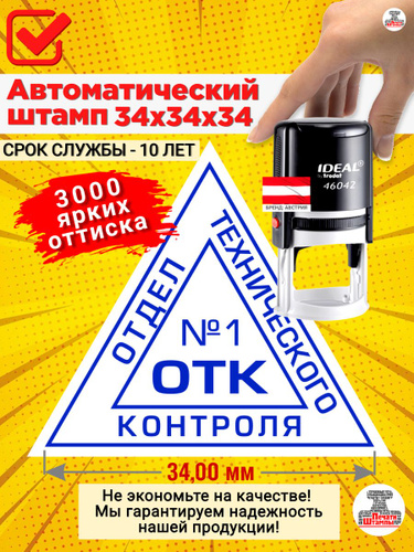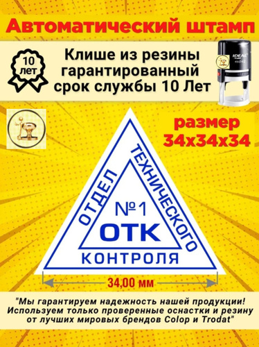 Штамп "ОТК 1" (Отдела технического контроля) треугольный, Размер: 34х34х34 мм