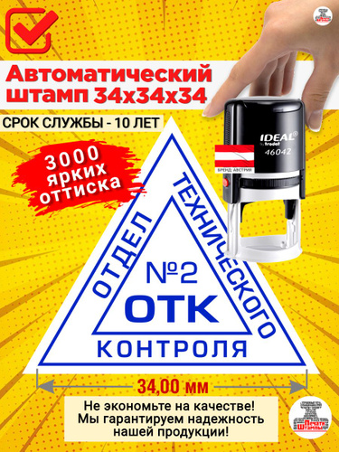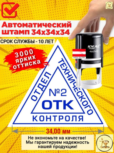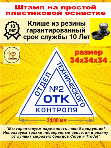 Штамп "ОТК 2" (Отдела технического контроля) треугольный, Размер: 34х34х34 мм