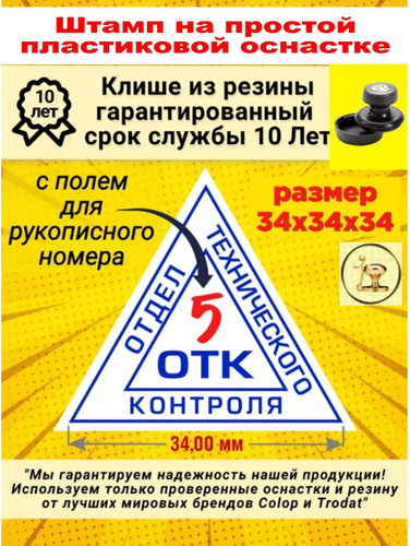 Штамп "ОТК" с полем для рукописного номера (Отдела технического контроля) треугольный 34х34х34 мм