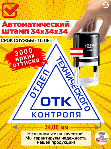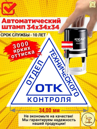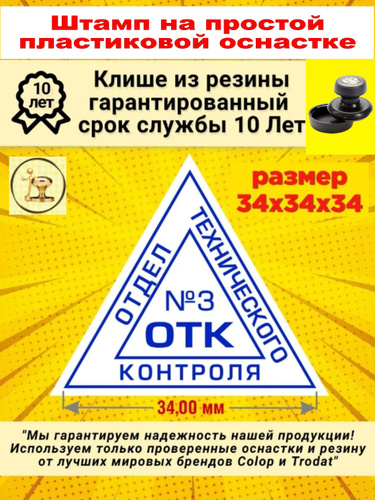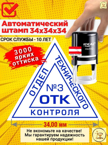 Штамп "ОТК 3" (Отдела технического контроля) треугольный, Размер: 34х34х34 мм