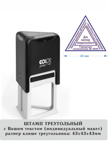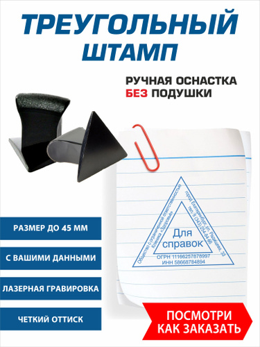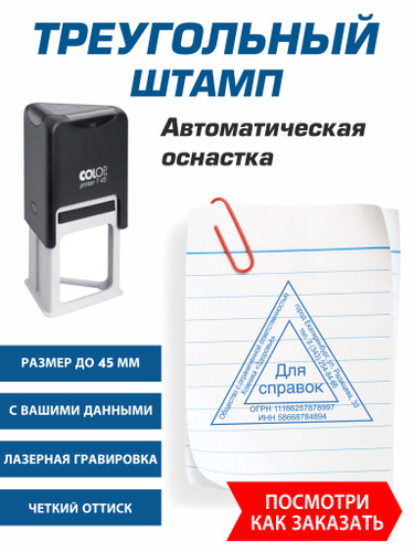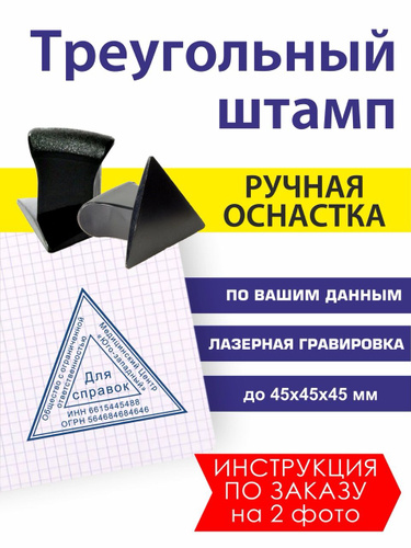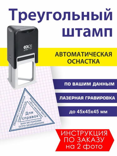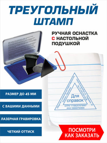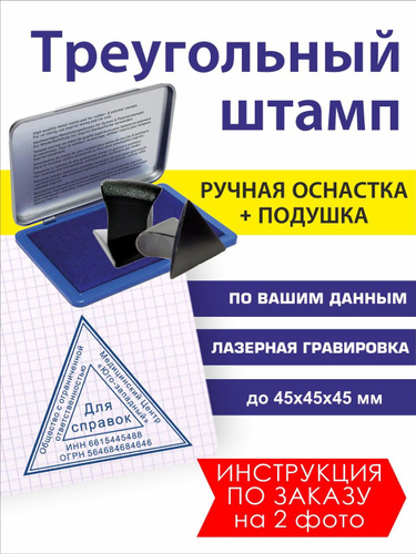Штамп треугольный с настольной штемпельной подушкой, по вашим данным, размер до 45 мм