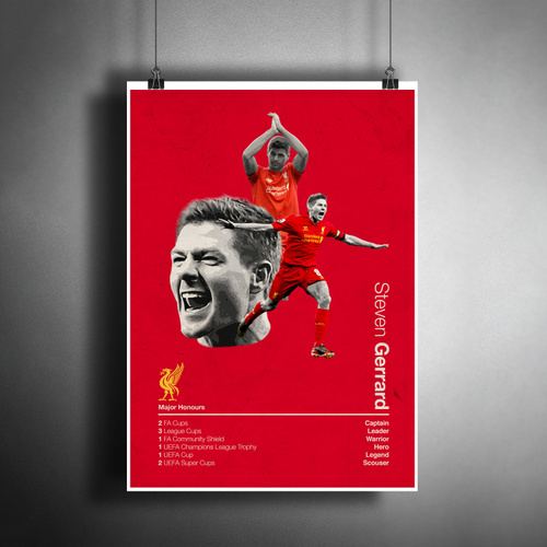 Постер плакат для интерьера "Футболист Стивен Джеррард". Ливерпуль/ Декор дома, офиса. A3 (297 x 420 мм)