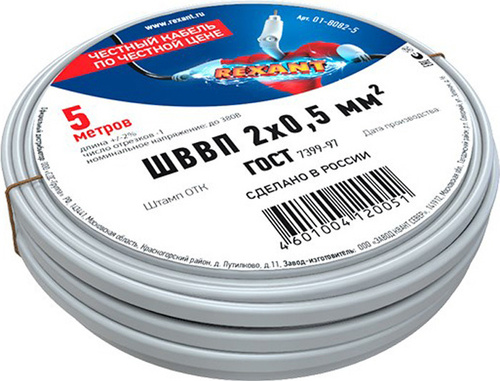 Силовой кабель 5 м ШВВП REXANT, 2 х 0.5 мм2, ГОСТ