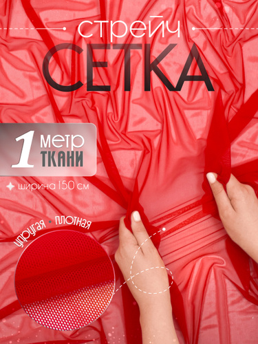 Ткань Сетка трикотажная эластичная стрейч Красная для шитья белья, купальников, одежды (отрез 1,5м х 1м)