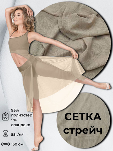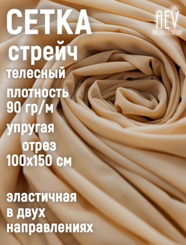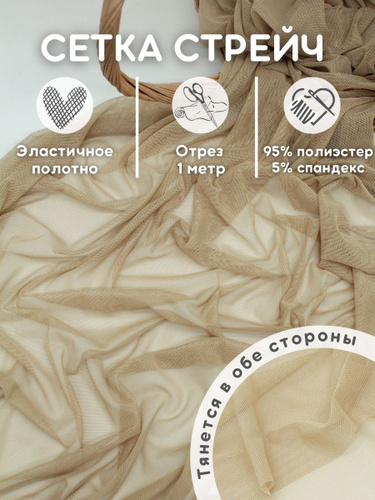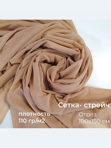 Сетка стрейч ткань для шитья 90 гр/м2 ширина 150см, 1 метр, бежевая