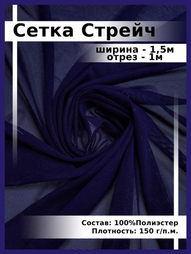 Сетка стрейч тёмно-синяя 85 гр, ширина 160 см длина 150 см