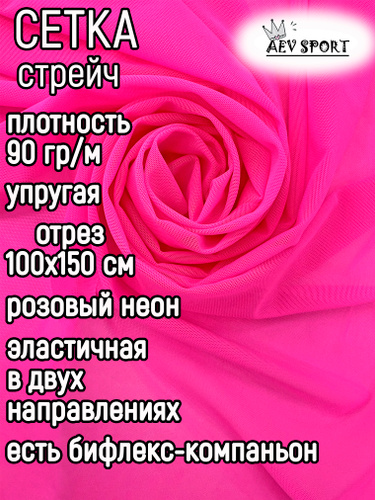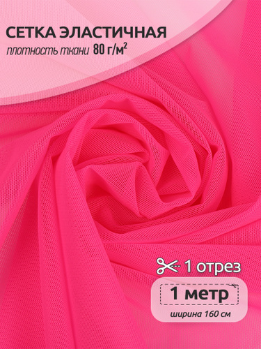 Сетка стрейч ткань для шитья 90 гр/м2 ширина 150см, 1 метр, розовый неон