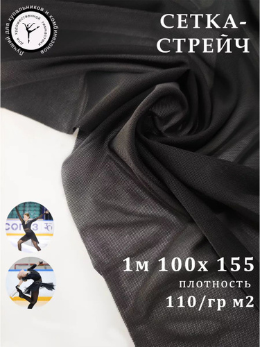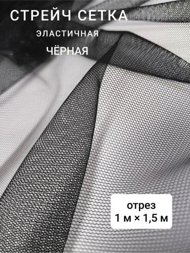 Сетка стрейч ткань для шитья 90 гр/м2 ширина 150см, 1 метр, черная