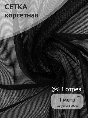 Ткань Сетка корсетная 45 г/м2, неэластичная, 1 х 1,5 м, черный для шитья и рукоделия