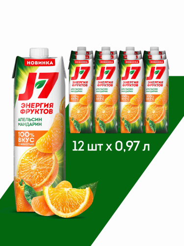 Нектар J7 Апельсин мандарин 100% вкус с мякотью, 12 шт х 0,97 л