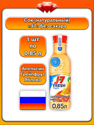 (1 x 850 мл) / J7, Сок, Цитрусовый микс без сахара с яблоком, апельсином и грейпфрутом, натуральный состав, с мякотью, освежающий вкус, для детей и всей семьи
