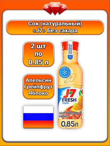 (2 x 850 мл) / J7, Сок, Цитрусовый микс без сахара с яблоком, апельсином и грейпфрутом, натуральный состав, с мякотью, освежающий вкус, для детей и всей семьи