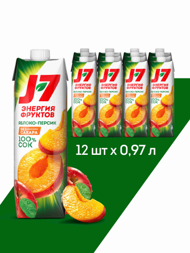 Сок J7 Яблоко-Персик без сахара, 12 шт х 0,97 л