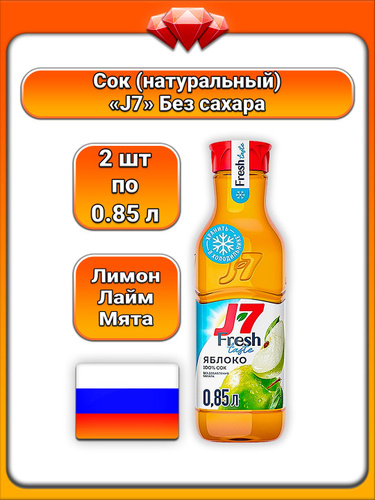 (2 x 850 мл) / J7, сок осветленный яблоко (без сахара), пастеризованный восстановленный, с натуральным вкусом, охлаждённый безалкогольный напиток для ежедневного употребления