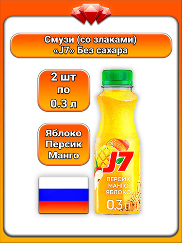 (2 x 300 мл) / J7, Смузи (фруктово - ягодный) Полезный завтрак (яблоко, персик, манго), обогащен витаминами, без сахара, с овсяными хлопьями, содержит пищевые волокна