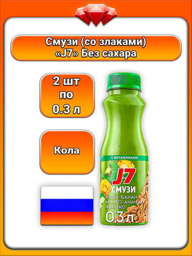 (2 x 300 мл) / J7, продукт питьевой смузи, Полезный завтрак, (киви яблоко ананас банан манго), охлаждённый, из фруктовых пюре и соков, с ржаными хлопьями, натуральные ингредиенты