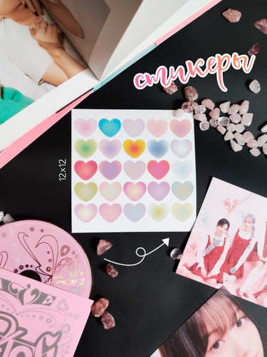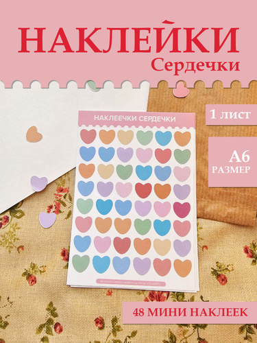 Авторские наклейки А6 "Сердечки 2.0" для творчества, для ежедневника, для планирования, лексаарт, leksaart