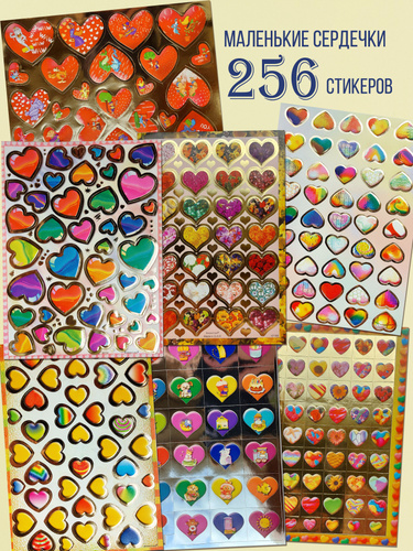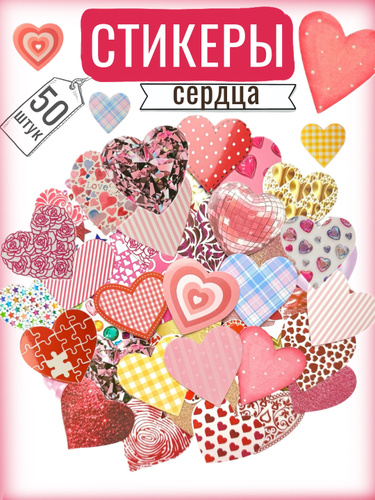 Наклейки стикеры, сердца блестящие, 50 шт. Многоразовые детские на телефон, ноутбук, автомобиль, тетрадь, для декора, подарка, творчества, заметок