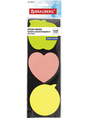 Бумага / стикеры / блок для заметок самоклеящиеся, фигурный Brauberg, Неоновый Ассорти, 3 цвета х 50 листов