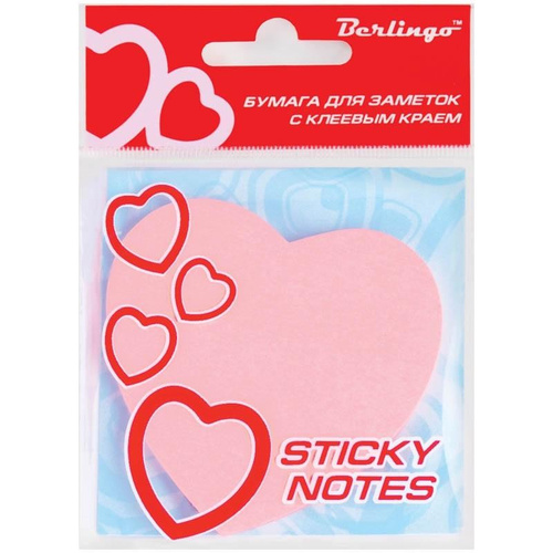 Стикеры для заметок 75x75 мм, 1 блок, 100 листов, красное сердце