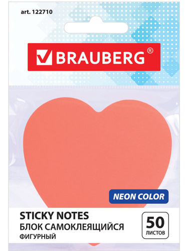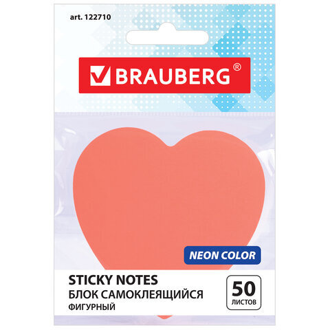 Бумага / стикеры / блок для заметок самоклеящиеся, фигурный Brauberg, Неоновый Сердце, 50 листов, розовый
