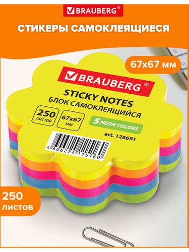 Бумага / стикеры / блок для заметок самоклеящиеся, фигурный, Brauberg, Неоновый Цветок, 250 листов, 5 цветов