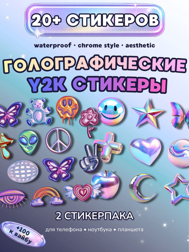 Стикеры для телефона голографические набор 20 шт эстетик наклейки для ноутбука