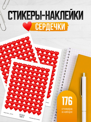 Набор стикеров Сердечки, 2 листа А6, 176 наклеек, наклейки для ежедневников, декора и творчества. FENOMEN