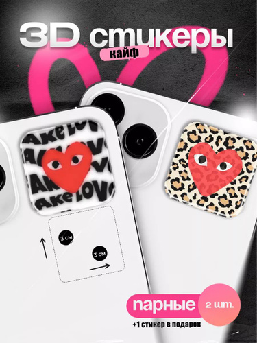 Парные наклейки на телефон 3D сердце c глазами