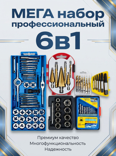 Набор метчиков и плашек, сверла - метчики, сверла ступенчатые, экстракторы для болтов и гаек