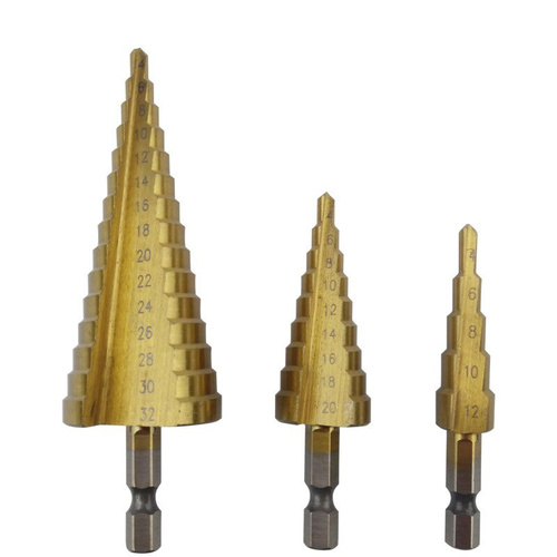 Набор сверл ступенчатых (3 шт; 4-12 мм; 4-20 мм; 4-32 мм; HSS TiN; трехгранный хвостовик) ТУНДРА 4087173