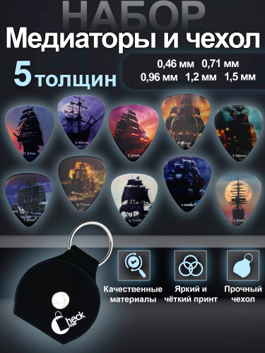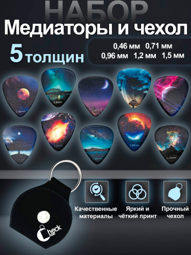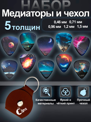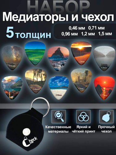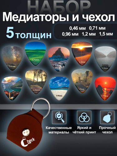 Медиаторы для гитары. Акустической. Классической. Укулеле. Набор 10 шт + чехол. Музыкальный аксессуар.