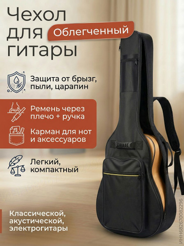 Чехол для гитары акустической классической и электрогитары SSY, черный