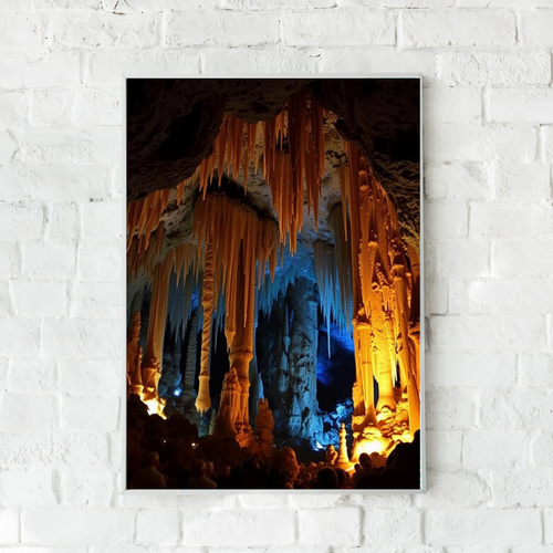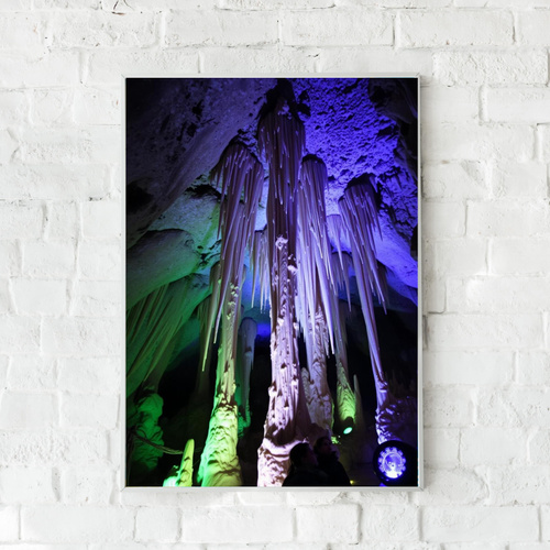 Постер 21х30 без рамы "Пещера с эхом и светящимися сталактитами"