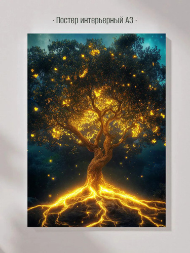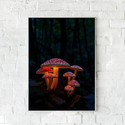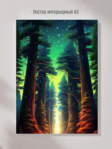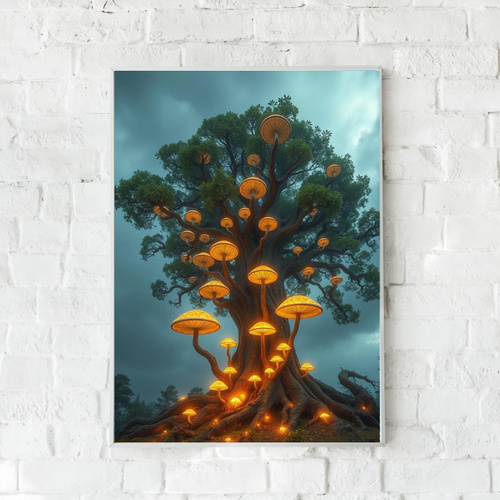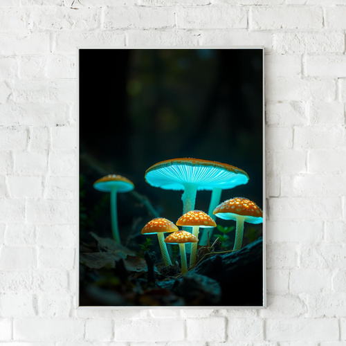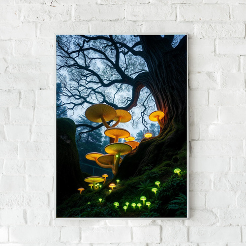 Постер 30х42 без рамы "Светящиеся грибы в волшебном лесу"