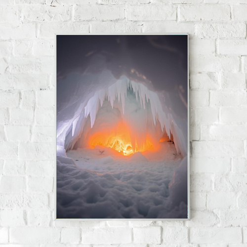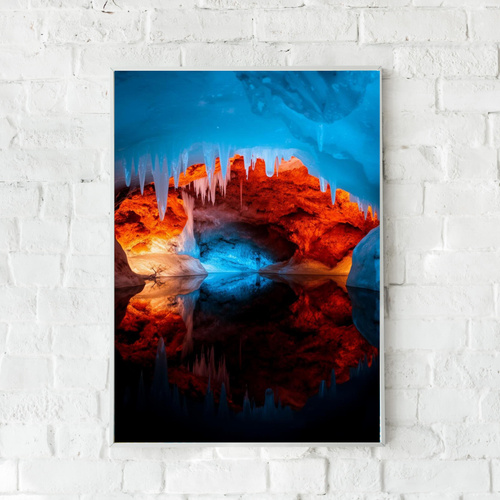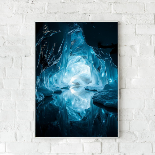 Постер 21х30 без рамы "Зеркальная пещера со светящимися ледяными кристаллами"