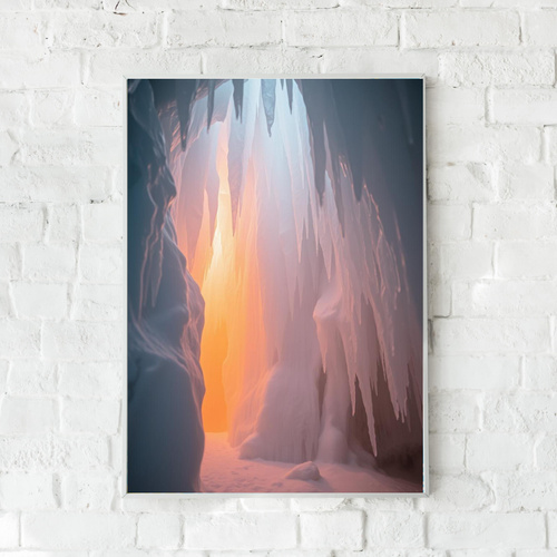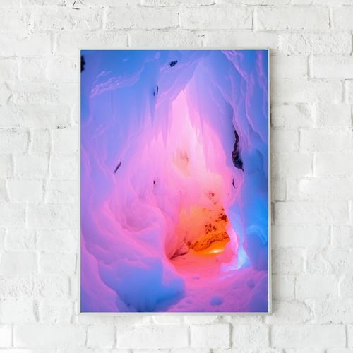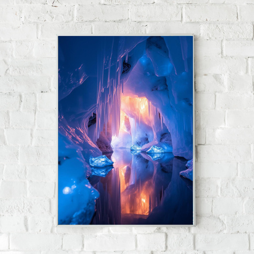 Постер 21х30 без рамы "Ледяная пещера со светящимися кристаллами"