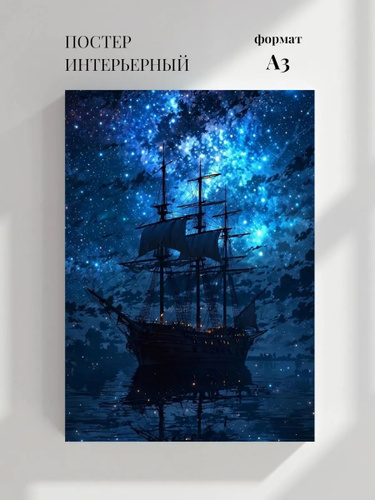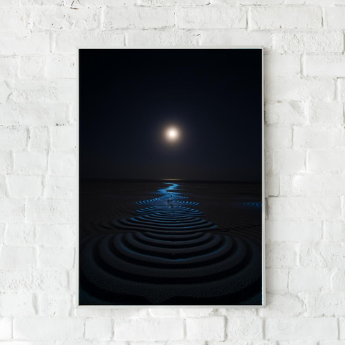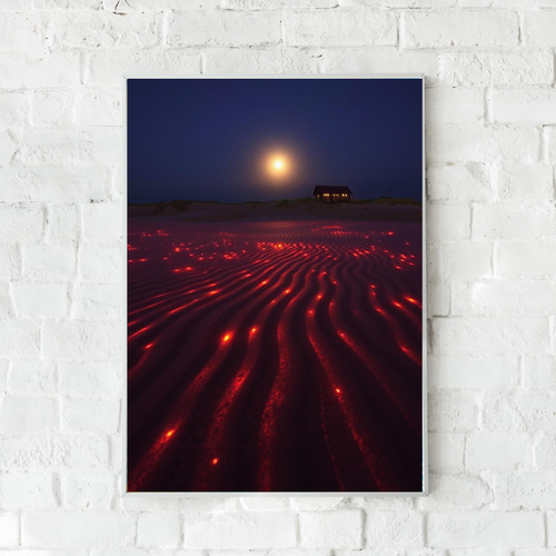 Постер 30х42 без рамы "Светящиеся волны песка под полной луной"