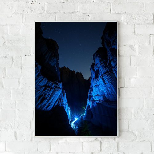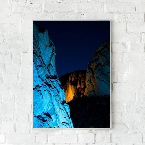 Постер 30х42 без рамы "Голубой кристаллический каньон, светящийся ночью"