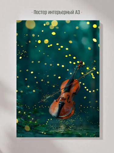 Постер, плакат на стену Скрипка и Светящиеся Капли