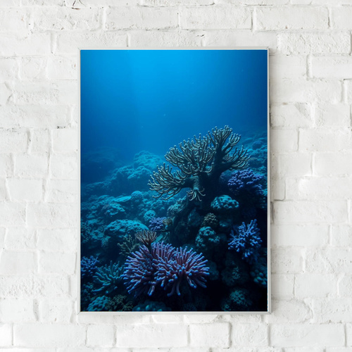 Постер 30х42 без рамы "Светящийся коралловый риф в подводной сказке"