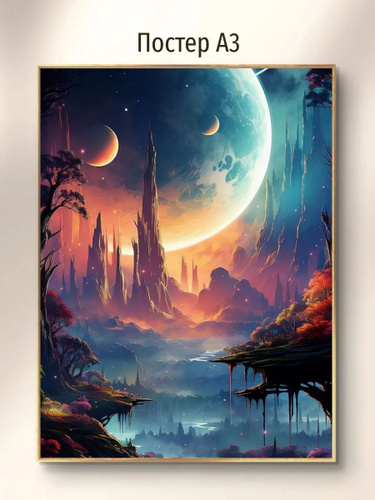 Постер "Фантастический Космический Пейзаж с Двумя", 42 см х 29.7 см
