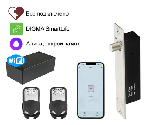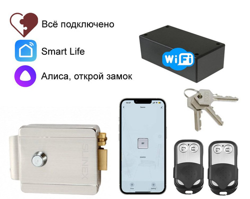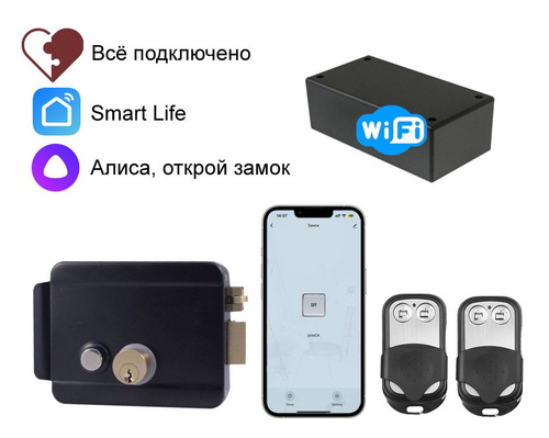Электронный накладной замок для дверей и калиток с радиопультами и Wi-Fi приложением Smart Life, Tuya, Яндекс Алиса