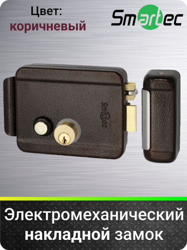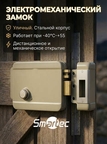 Замок SMARTEC ST-RL073SI-BR электромеханический накладной для установки на улице для калитки, ворот или двери/5 ключей
