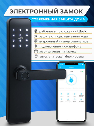 Умный кодовый замок TTLock М77RUS для входной двери, с Bluetooth и отпечатком пальцев