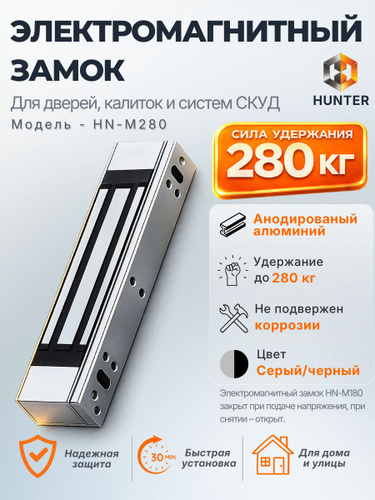 HN-M280 замок электромагнитный (сила удержания 280 кг, планка) Hunter