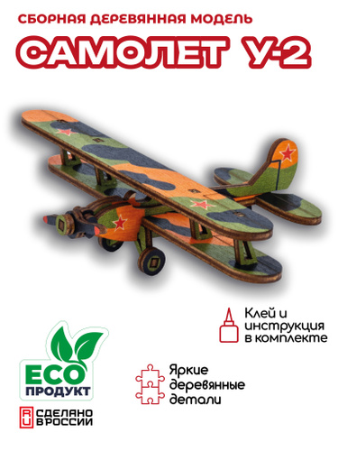 Деревянный конструктор, сборная модель самолёт У-2