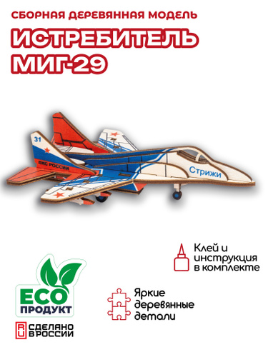 Деревянный конструктор, сборная модель истребитель МиГ-29