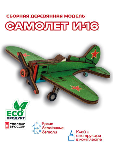 Деревянный конструктор, сборная модель истребитель И-16