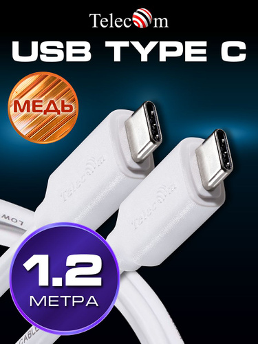 TYPE C кабель 10 ГБит/с 60W зарядка медь передача данных TELECOM высокоскоростной (TUS719W-1.2M)